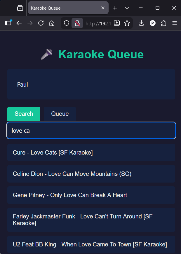 Utilising Claude AI developed in Python I have developed a Windows desktop Karaoke server and player app. Guests can remotely connect to the server from mobile devices and search the database of songs and add them to the player queue.
